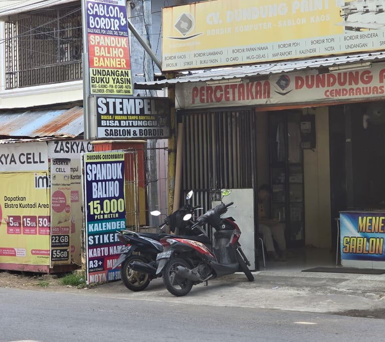 Sablon Baju Makassar. CV. Dundung Print adalah perusahaan percetakan sablon baju kaos yang beroperasi di Makassar sejak tahun 1999. Kami telah memiliki pengalaman yang luas dalam menghasilkan sablon berkualitas tinggi yang dapat bersaing di tingkat internasional. Kami menerima berbagai jenis sablon baju kaos, seperti sablon DTF, sablon polyflex, sablon rubber, sablon DTG, dan masih banyak lagi. Dengan teknologi mutakhir dan tim yang ahli, kami dapat memberikan hasil sablon yang memuaskan dan memenuhi standar kualitas yang tinggi. Kami berkomitmen untuk memberikan pelayanan terbaik kepada pelanggan dengan menjaga kepuasan dan kepercayaan mereka. Jadi, jika Anda membutuhkan jasa sablon baju kaos yang handal, CV. Dundung Print siap membantu Anda.